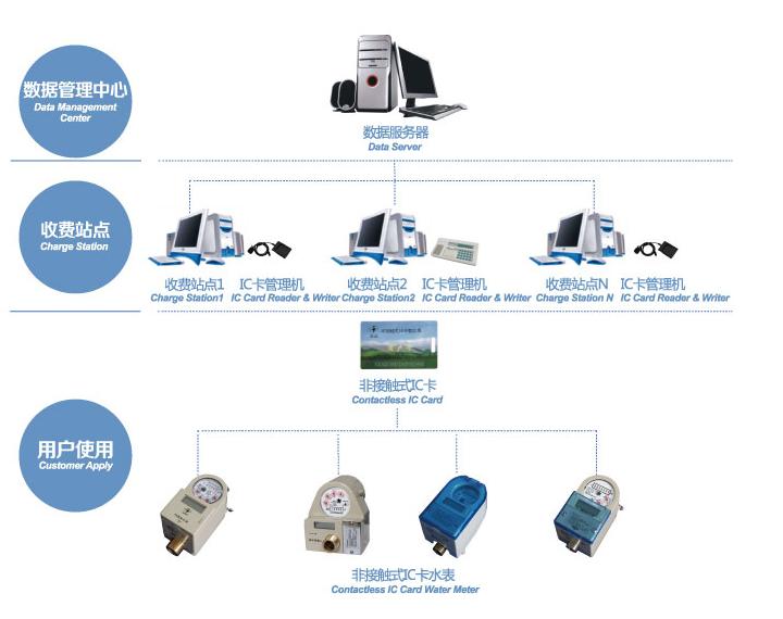 IC卡水表系統(tǒng)以IC卡作為數(shù)據(jù)載體,在微機(jī)系統(tǒng)管理軟件下可實現(xiàn)用水收費、數(shù)據(jù)存儲分析、監(jiān)控水表運行狀態(tài)等功能,從而對水資源實現(xiàn)科學(xué)化、系統(tǒng)化、透明化的管理。本系統(tǒng)可通過預(yù)付費、水表自動核減水量、根據(jù)水量自動開關(guān)閥等途徑,解除傳統(tǒng)人工抄表擾民、耗費大量時間和精力等難題,并杜絕惡意欠費。IC卡水表系統(tǒng)可有效提高管理部門的效益,已廣泛在高校、物業(yè)中心等全國各行業(yè)成功運用。